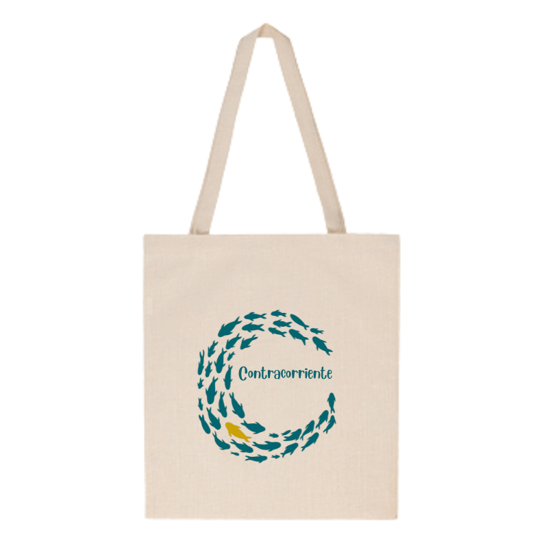 La tote bag Contracorriente está pensada para espíritus rebeldes, inconformistas y soñadores que se atreven a nadar en dirección opuesta. El diseño muestra un banco de peces girando en círculo… excepto uno, dorado y valiente, que nada a contracorriente con determinación. Una metáfora visual poderosa, con estética limpia, marinera y moderna.